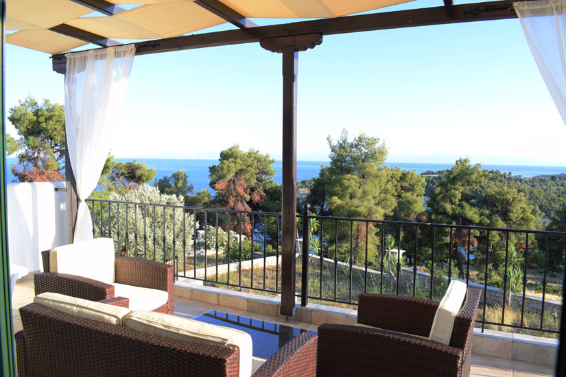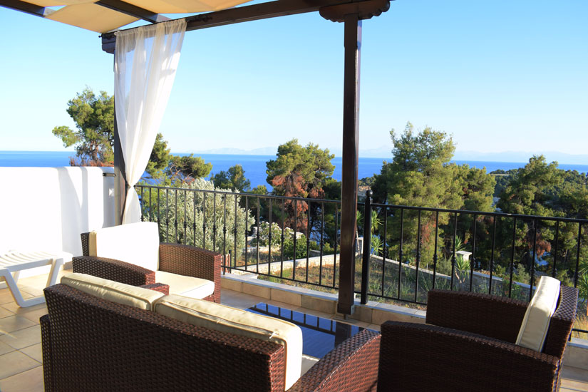 - Μία εξωτερική μεγάλη τραπεζαρία προστατευμένη από τον ήλιο